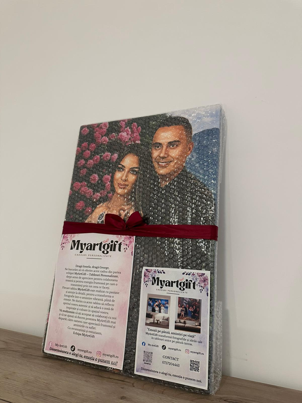 "Am primit de la Myartgift un cadou absolut superb! Portretul este realizat cu o atenție incredibilă la detalii, iar emoția surprinsă în imagine este de neprețuit. Un dar personalizat, memorabil și cu adevărat special!”"